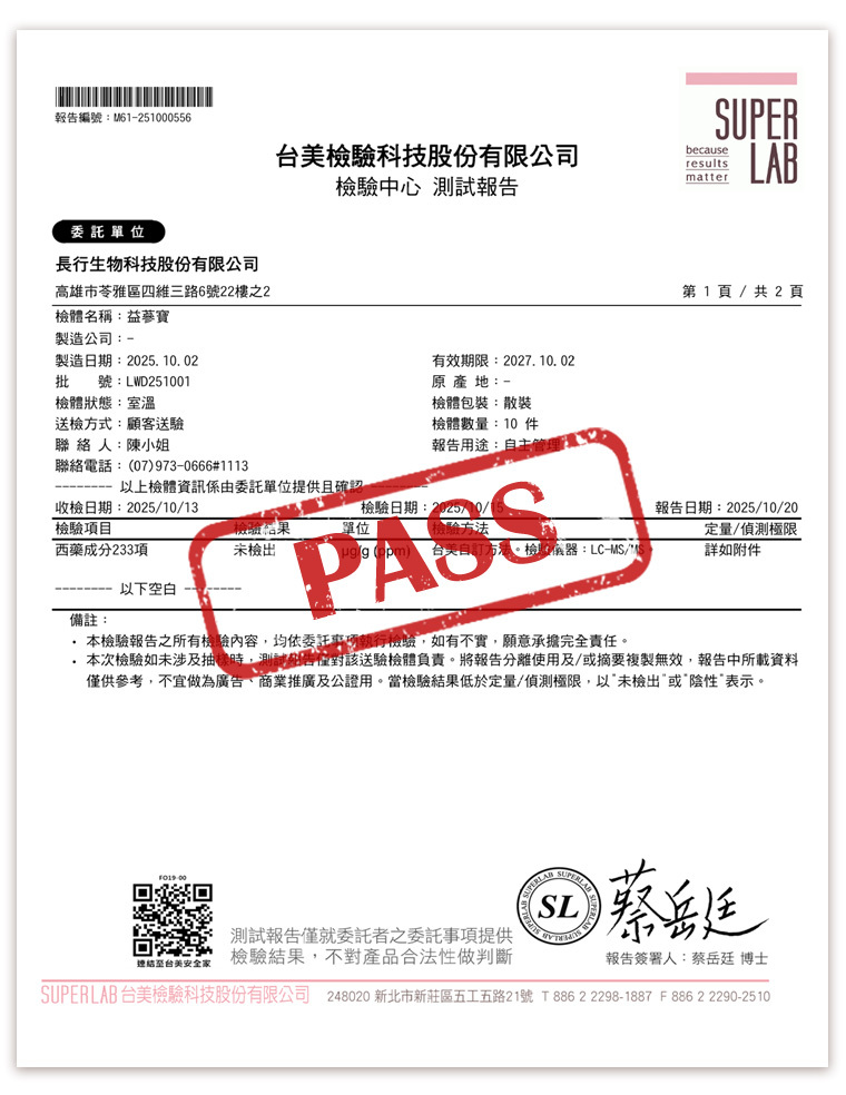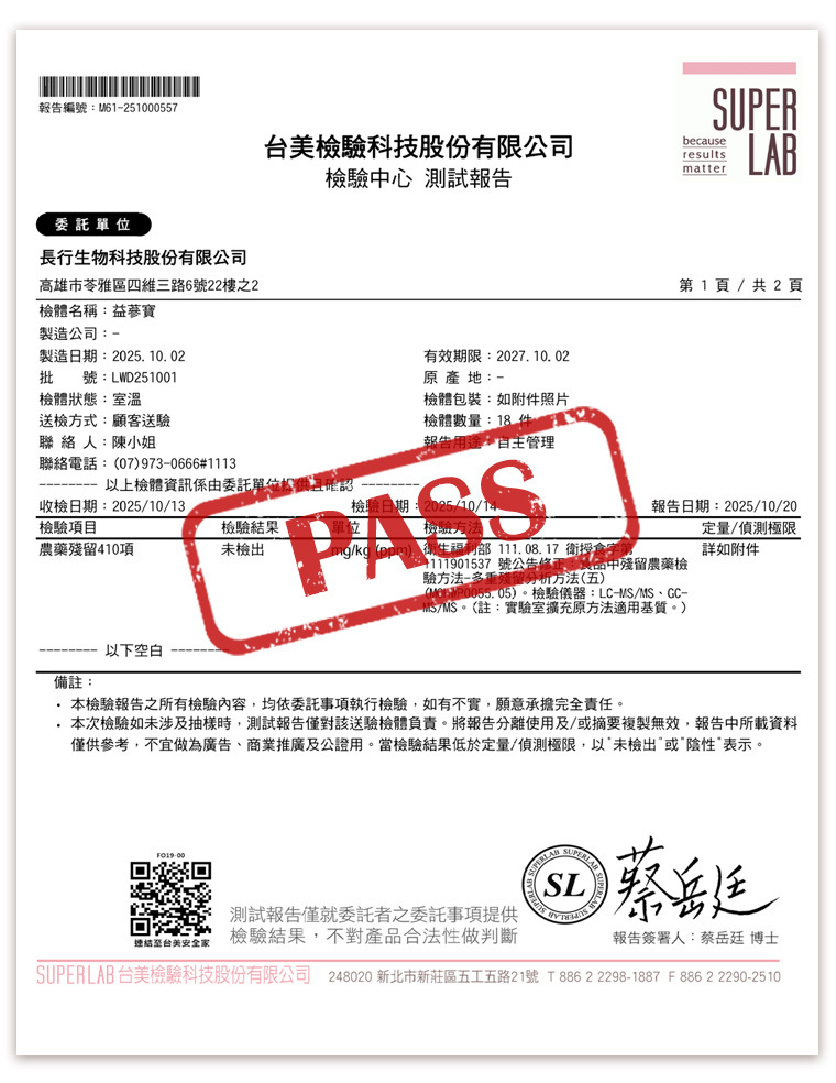 送檢後檢驗報告均合格 , 吃的安心又健康