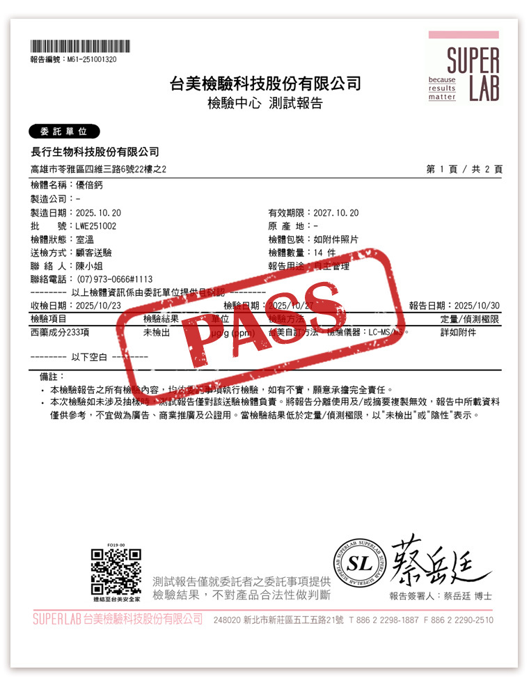 送檢後檢驗報告均合格 , 吃的安心又健康