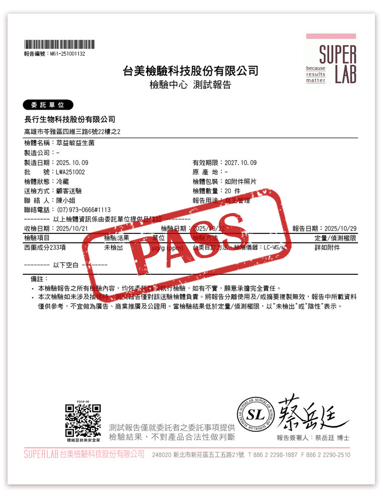 通過233項西藥檢測-未檢出