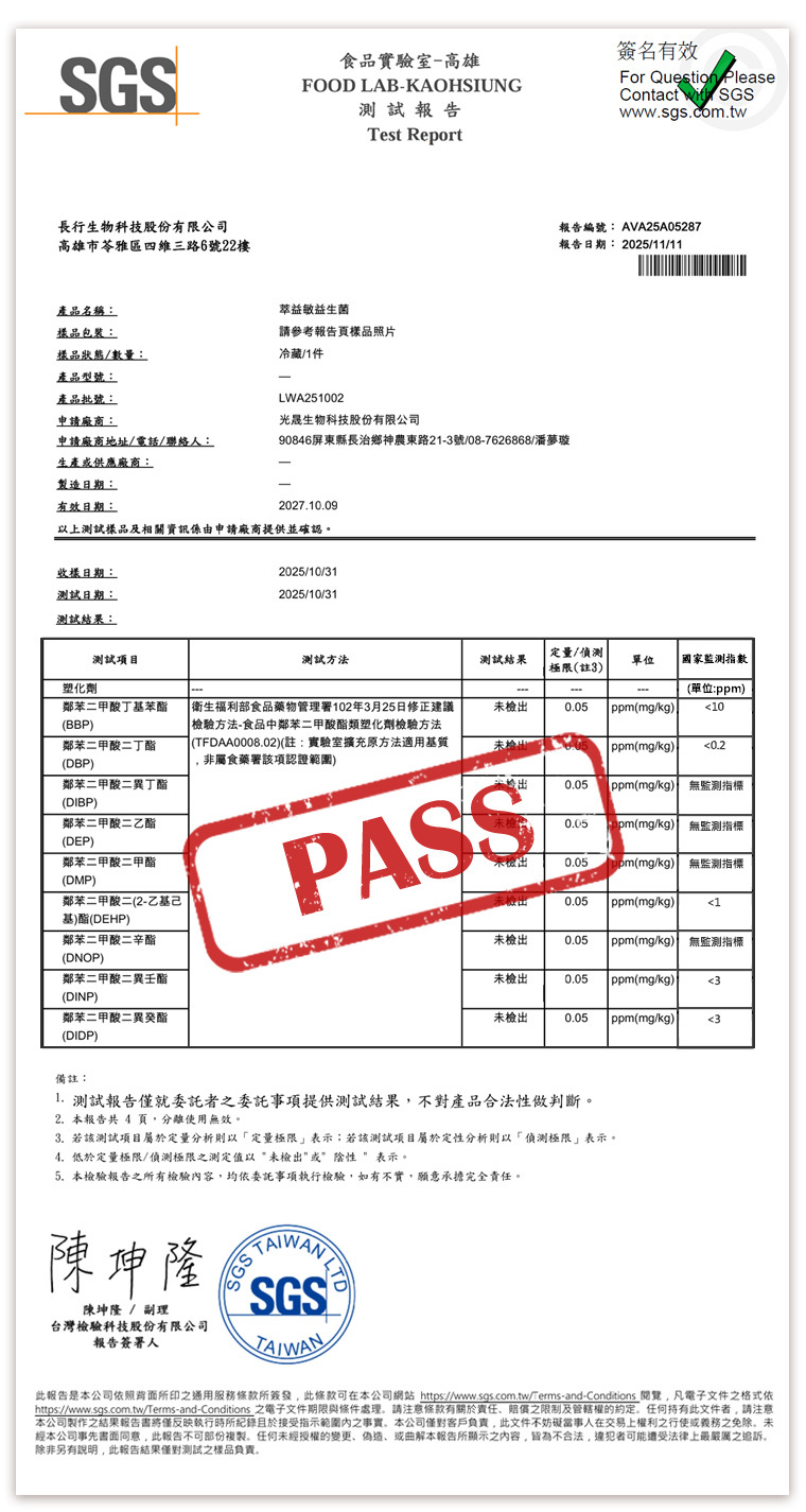 塑化劑符合國家監測指標 – 全數通過