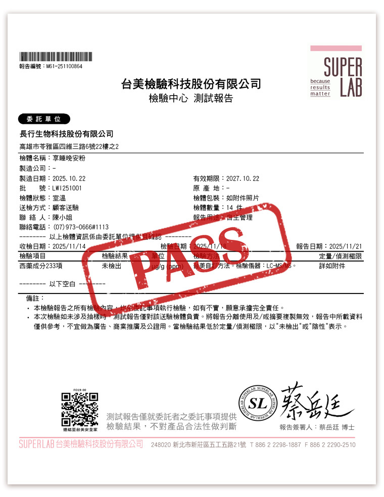 通過233項西藥檢測-未檢出