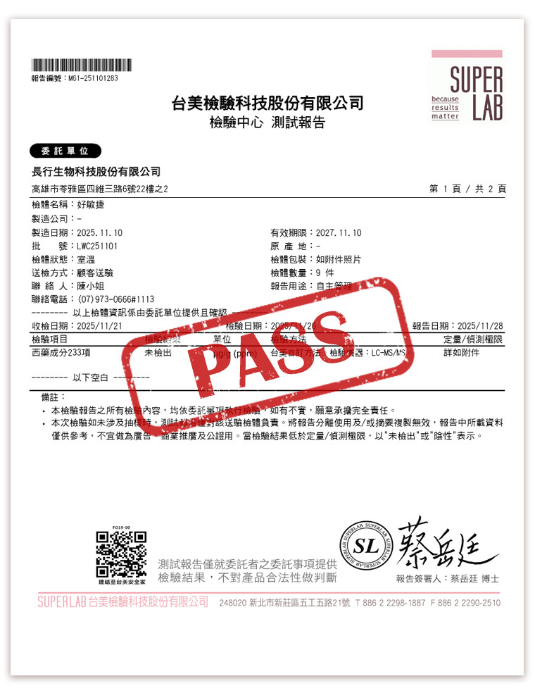 送檢後檢驗報告均合格 , 吃的安心又健康