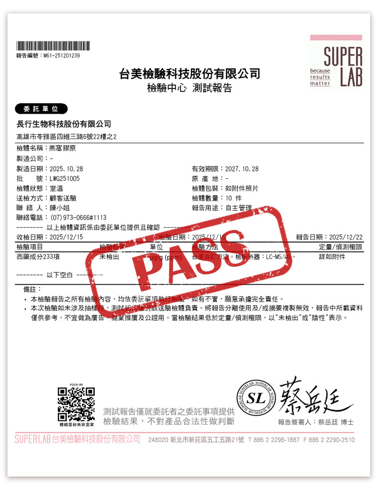 送檢後檢驗報告均合格 , 吃的安心又健康