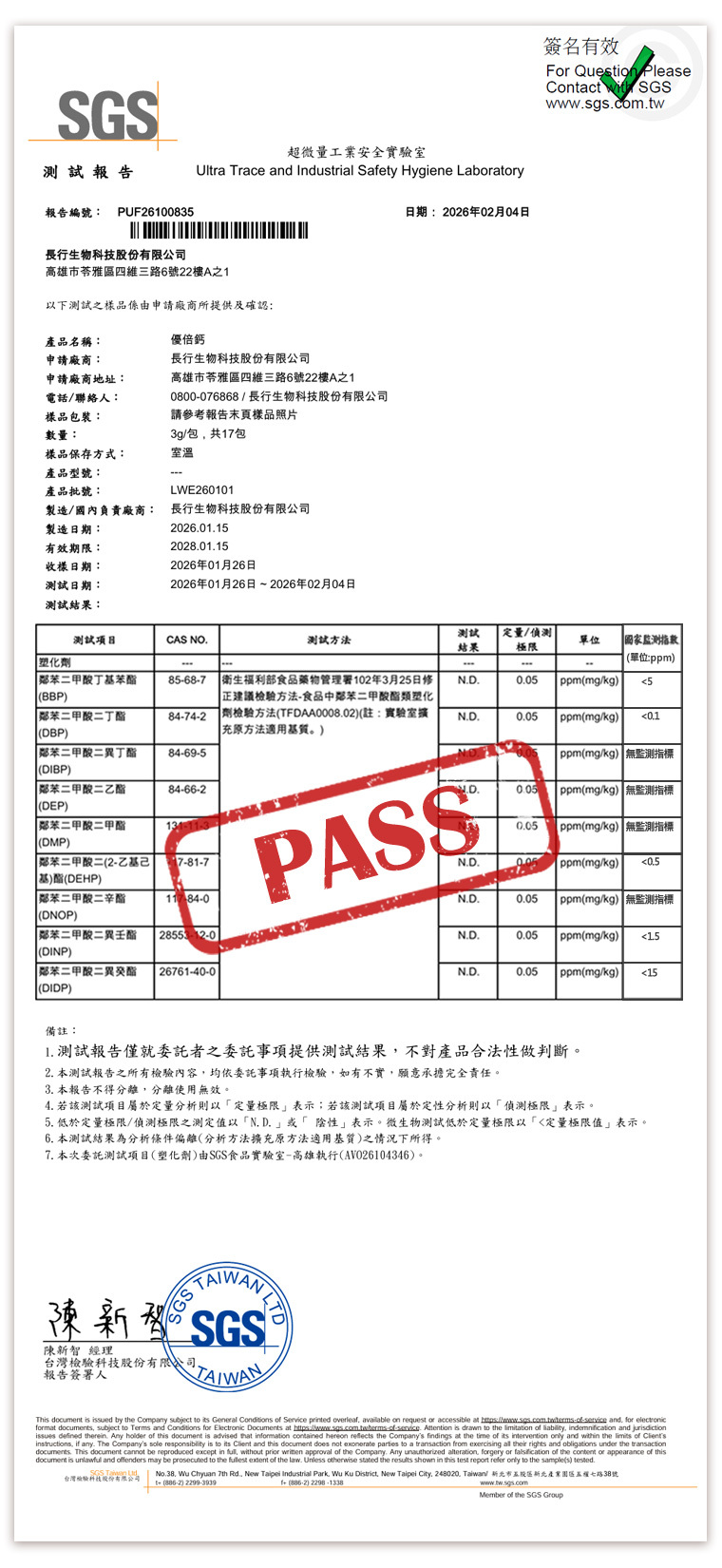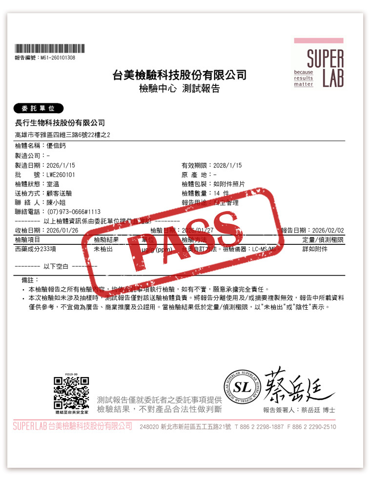 送檢後檢驗報告均合格 , 吃的安心又健康
