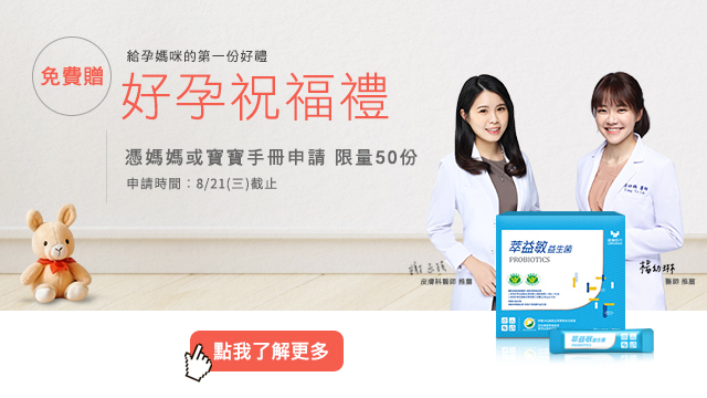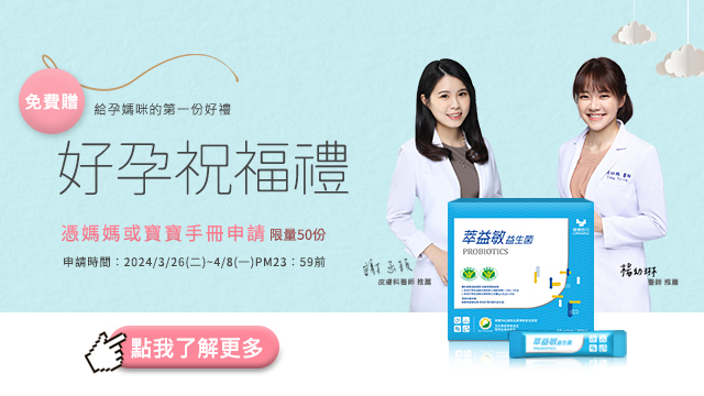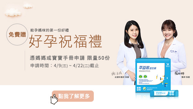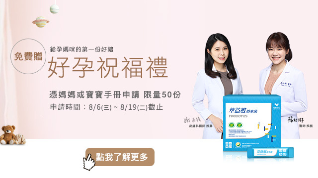 憑媽媽手冊(滿16週)或寶寶手冊(6個月內)送萃益敏益生菌及優倍鈣等超多好禮,快來免費申請吧!!