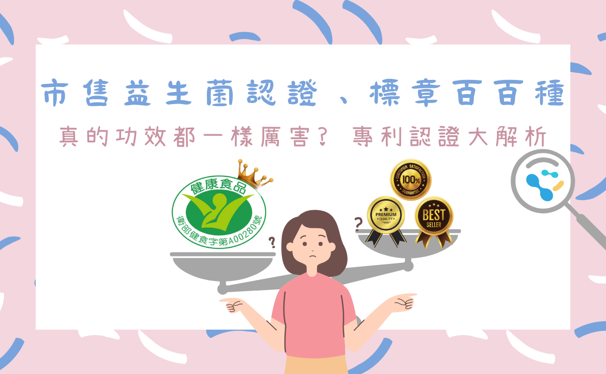 市面上八九成的益生菌都標榜「有認證」,但消費者的您是否曾仔細查看過廠商所謂的「認證」到底是在認證什麼? 如果各家廠牌真的都一樣厲害,那為何不買便宜的就好?但凡思考其實就會發現答案,因為每個認證標章的「含金量」並不同,若益生菌同時有健康功效和第三方品質掛保證是件很難得的事,通常要兩者具備才能在廣大的競爭市場脫穎而出