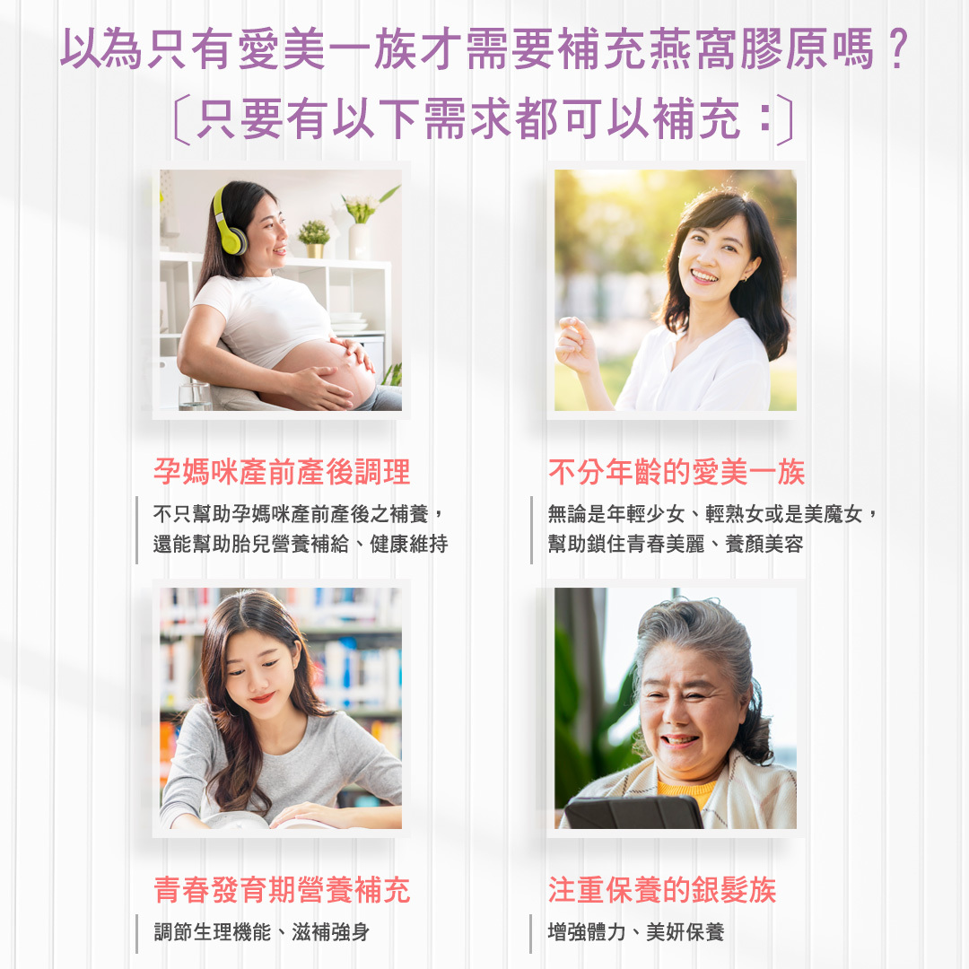◆哪些族群適合補充燕窩膠原呢?