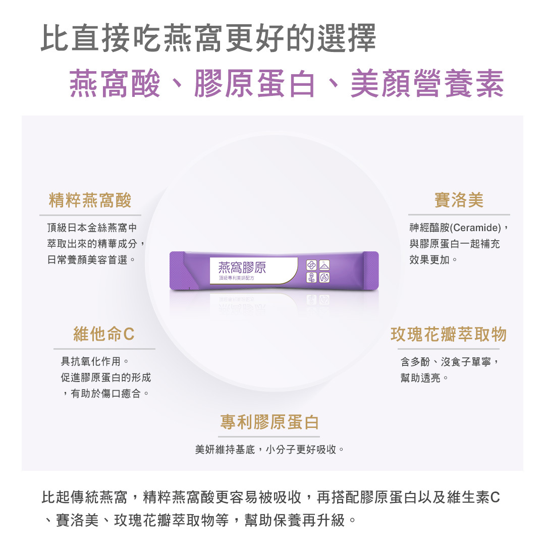 頂級燕窩酸聯手專利膠原蛋白,愛美一族由內而外妍美肌美容聖品『燕窩膠原』