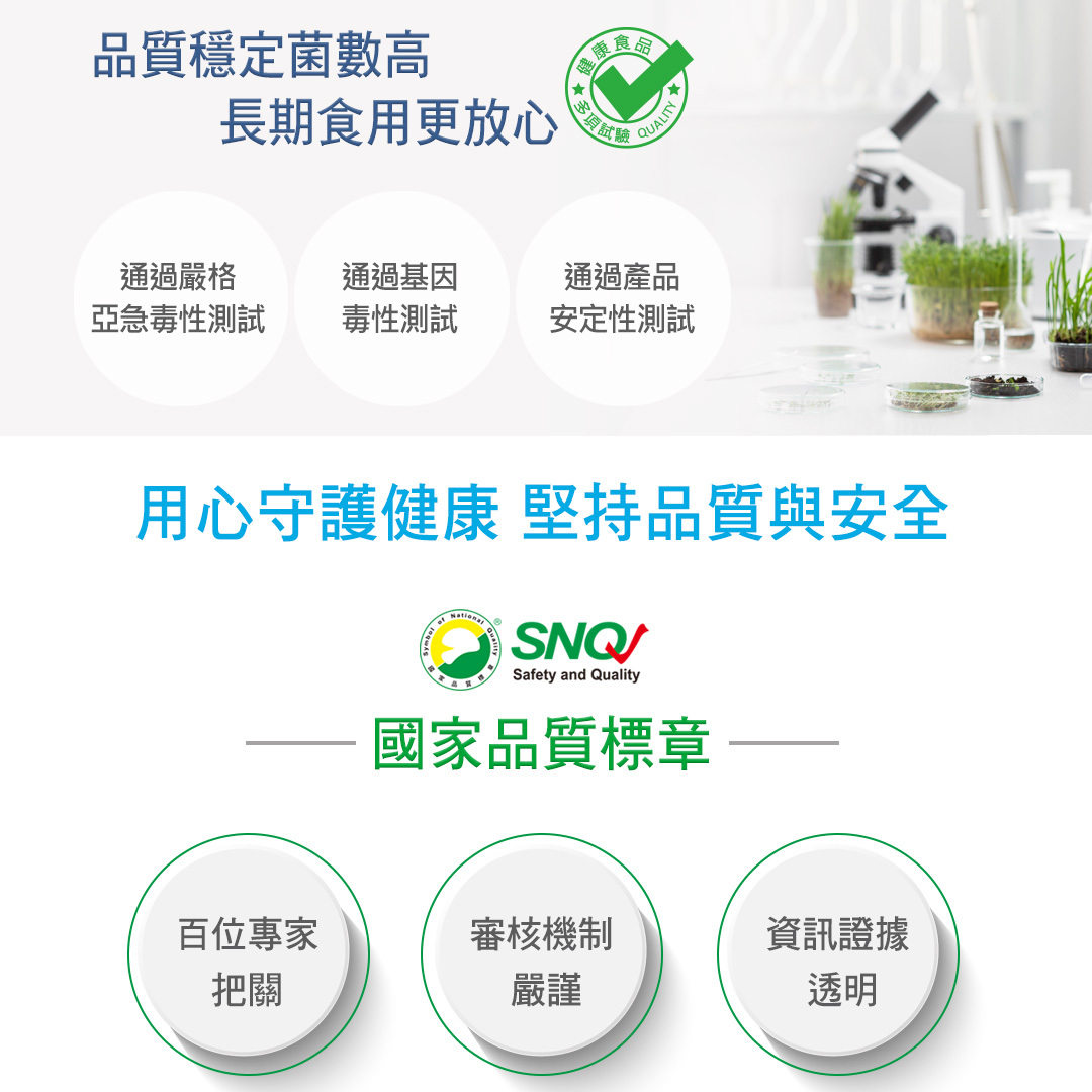 選擇有小綠人標章可以確定✔️安全性、 ✔️穩定性及✔️功效,並透過SNQ標章了解產品從原料到成品✔️製程管控✔️提供高品質的益生菌。有這些認證的益生菌才能夠安心給自己或是家人補充好菌。