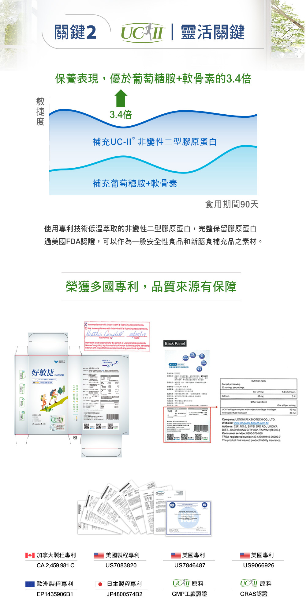 ▶專利UC-II非變性二型膠原蛋白,敏捷UP